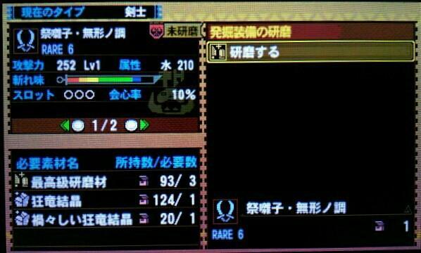 【MH4】(最高峰:発掘武器:双剣:祭囃子・無形ノ調)今日の戦利品♡紫発光で水属性の祭囃子・無形ノ調
