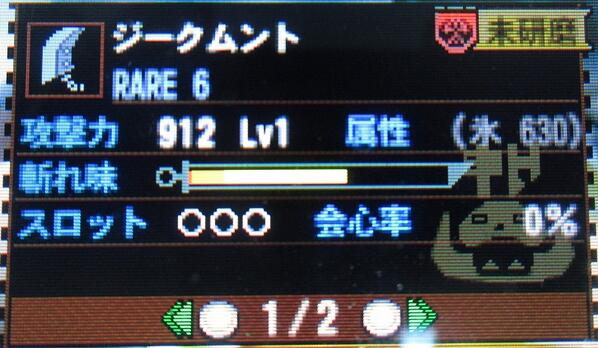 【MH4】(攻撃力OK、属性値激高、s3、の傑物なんですが、残念:発掘武器:大剣:ジークムント)今日のジークムント。出る気配がない
